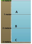 This diagram shows three locations - A, B & C in the same fluid. Which gives A, B & C from lowest to highest pressure correctly .
