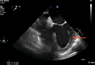 You observe a regional wall motion abnormality in area indicated by the arrow. What coronary artery MOST likely supplies this part of the heart?