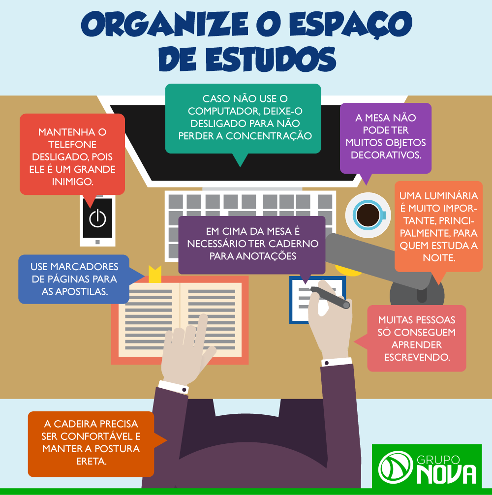 Nos finais de semana, ou feriados, comece a fazer seu resumos para organizar todas as informações adquiridas ao longo da semana.