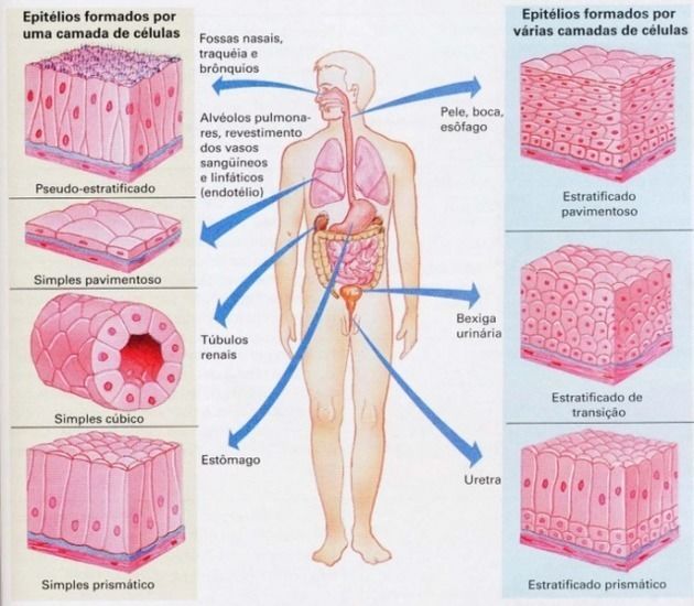 Tecido Epitelial de revestimento: o posicionamento das células desse tecido permite a formação de camadas contínuas capazes de revestir superfícies, como alguns órgãos.