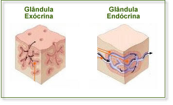 Glândula exócrinas: eliminam as substâncias secretadas para fora do organismo ou em cavidades abertas. Ex; Glândulas sudoríferas e mamárias.
