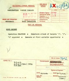 Caption: : Cipher ordering "Operation Chastise" the start of the Dambusters campaign
