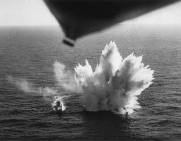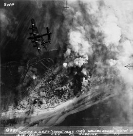 Caption: : Aerial photograph of bombing raid over Wangerooge