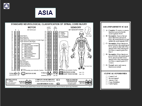 Usando NE: Para documentar los niveles sensitivo, motor, y el NNL, el grado de Escala de Deficiencia de ASIA (AIS), y la zona de preservación parcial (ZPP) cuando resulta imposible determinarlos basados en los resultados del examen.