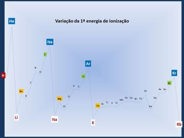Caption: : Variação da 1ª energia de ionização ao longo da TP