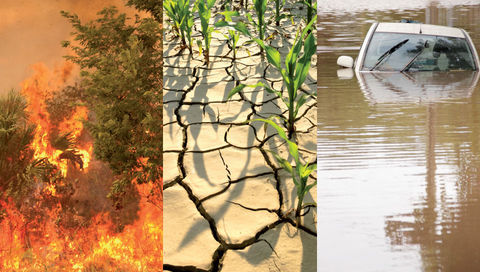 Caption: : Increased frequency of droughts, floods and forest fires—some of the effects of climate change.
