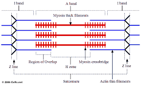 Caption: : The diagram below describe the arrangements of actin and myosin. Please note that actin filaments are made of chains of globular actin molecules