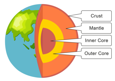 The Earth is almost a sphere. These are its main layers, starting with the outermost:
