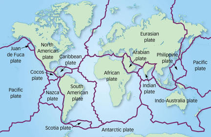 Caption: : The earth's continents are constantly moving due to the motions of the tectonic plates. Closely examine the map below, which shows the 15 major tectonic plates.