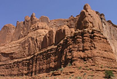 Caption: : Sedimentary rocks may contain fossils of animals and plants trapped in the sediments as the rock was formed. Sedimentary rocks are often quite soft and are susceptible to erosion.