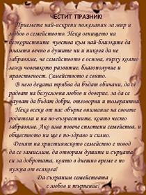 Молитва за мир в дома и семействотоБоже на любовта, на мира и на дълготърпението! Помогни на всички нас, които живеем в тоя дом и сме свързани чрез родство и чрез вярата в Тебе, да пребъдваме винаги в дълбок мир, в съгласие, в разбирателство и любов.Умножавай дълготърпението ни, както Ти Сам, Господи, си дълготърпелив и когато грешим, не ни наказваш според праведния Твой съд.Укротявай и в благост превръщай нашите раздори и гнева ни, за да не би злото да се усили, да причини тежки вреди, да помрачи душите ни и да раздели тия, които трябва да живеят под благословения от Тебе покрив на нашия дом.Ти, Който всичко прощаваш, премахни всяко злопаметство от нашите сърца и ни дай да бъдем бързи в прощаване и в примирение.Отстрани с Твоята могъща десница причините на всяко несъгласие, раздор или вражда и внедри дух на кротост и на обич в сърцата на всички нас, за да бъдем благословена домашна челяд, която напредва във всяко добро за Твоя слава – Отец, и Син, и Свети Дух.Амин.