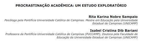 Leitura do artigo "Procrastinação acadêmica: um estudo exploratório.