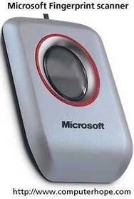 shows a Microsoft Fingerprint sensor and reader, a hardware device that
