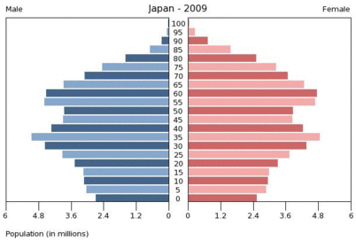 The birth rate is slowly falling - there's less money thanks to dependent old people. The death rate is low and fluctuating, population growth is negative and there are many more older people.