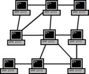 La topología en malla es una topología de red en la que cada nodo está conectado a todos los nodos. De esta manera es posible llevar los mensajes de un nodo a otro por diferentes caminos. Si la red de malla está completamente conectada, no puede existir absolutamente ninguna interrupción en las comunicaciones. Cada servidor tiene sus propias conexiones con todos los demás servidores.