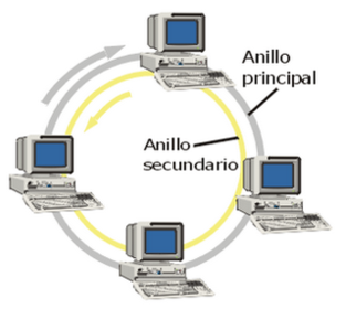 Todas las señales pasan en una dirección y pasan por todas las computadoras de
