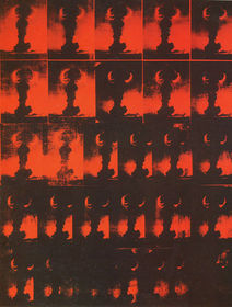 The bottom row is cut off, suggesting that they continue beyond the confines of the canvas, which leads to another aspect of the work—Warhol’s interest in machine-like processes such as mass production.