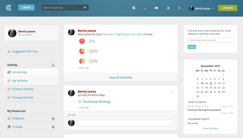 Once you are logged in to Go Conqur, you will be taken directly to your dashboard. Within your dashboard, you have options to view your activity, subjects, your personal profile featuring your friends and groups, as well as options to create a variety of different study tools that work best for you.