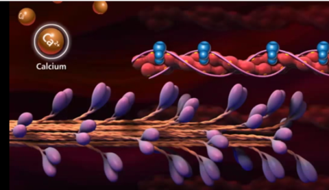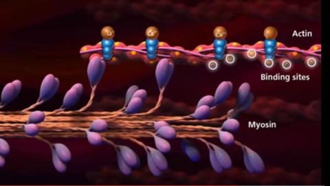 Before you can understand calcium's role in muscle contraction, you have to understand the way actin filaments are structured. Actin filaments have the proteins troponin and tropomyosin. When the muscle is relaxed the tropomyosin blocks the binding sites on the actin. This prevents a crossbridge.