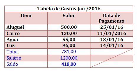 *Não é necessário utilizar valores reais para a construção da tabela.Salve os dois exercícios e envie via e-mail para jaque@itaipu.gov.br