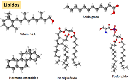 Función: altamente energéticos.Algunos son estructurales como los fosfolipidos o el colesterol (son precursores de hormonas esteroides y de la vitamina D) Atraves de las grasas deben absorberse las vitaminas liposolublesPropiedades.Esterificación: Es una reacción en la cual un ácido graso se une a un alcohol, mediante un enlace covalente. De esta reacción se forma un éster, liberando agua.Saponificación: Es una reacción en la cual un ácido graso se une a una base dando una sal de ácido graso, liberando una molécula de agua.Antioxidación: Es una reacción en la cual se oxida un ácido graso insaturado. Carateristicas. Los lípidos son biomoléculas orgánicas formadas por C, H y O pudiendo contener además N, P y S.