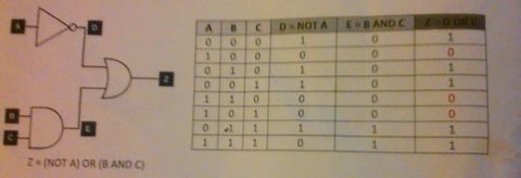 Caption: : I need to understand all 3 logic gates showcased in this photo and the truth table that showcases this