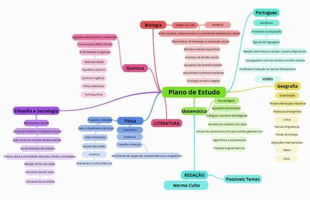 Para organizar as novas Disciplinas, assuntos e tópicos que você está aprendendo, uma boa estratégia é criar um Mapa Mental para traçar seu plano de estudos para cada matéria. Isso vai lhe ajudar a criar uma imagem visual das novas disciplinas e preparar-se para os exames que estão chegando.Mesmo que você acredite que não sabe muito sobre um determinado tema neste momento, registrar visualmente todos os tópicos vai motivar o seu subconsciente a conectar ideias!