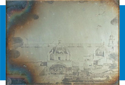 Esta imagen fotográfica fue tomada en el puerto y ciudad de Veracruz alrededor de 1839. Esta considerada la más antigua realizada en México y muestra la iglesia del convento de San Francisco y al fondo el castillo de San Juan de Ulúa.A pesar de que las primeras fotografías que se tomaron en México aparecieron sólo seis meses después de que se anunciara la invención del daguerrotipo en 1839, hubo que esperar hasta la intervención francesa (1864-1867) para ver el florecimiento de la fotografía en México. Durante esta época la labor de los fotógrafos estaba estrechamente vinculada a la corte de Maximiliano y a la documentación oficial de acontecimientos políticos, por lo que tendía a legitimar la posición del emperador.