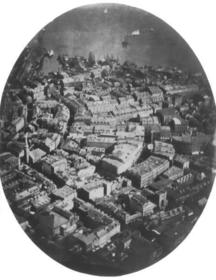 En 1858 se toma la primera fotografía aérea desde un globo estático por Nadar, al igual que la anterior, la imagen se perdió por lo que James Wallace se lleva el reconocimiento en 1860 fotografiando Boston.A partir de 1880 se industrializó las nuevas placas secas al gelatino-bromuro, así, los fotógrafos compraban cajas de placas vírgenes ya sensibilizadas y listas para cargar en chasis y ser expuestas en la cámara.