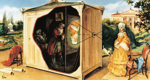 1640 – Athanasius Kircher, sacerdote alemán, inventa la linterna mágica, una caja cerrada con un agujero de un lado y en la pared opuesta un vidrio. Al poner un objeto iluminado junto al orificio, aparece proyectado en el vidrio en posición invertida.El italiano Giovanni della Porta la perfecciona colocándole al orificio una lente, para que las imágenes aparezcan más nítidas. Esta cámara oscura es ya básicamente una cámara fotográfica.
