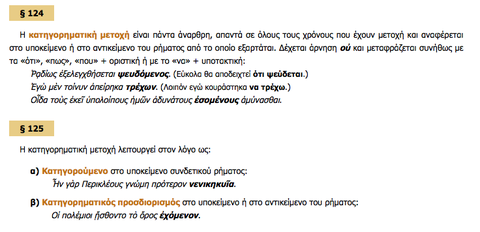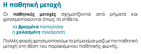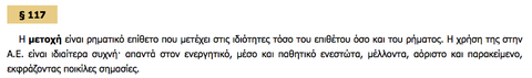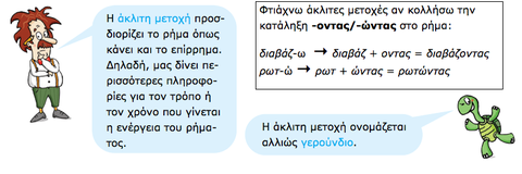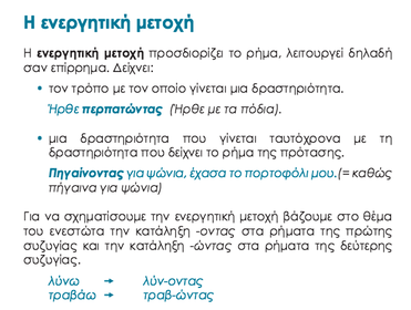Caption: : Η μετοχή της ενεργητικής φωνής είναι άκλιτη (δεν την κλίνουμε: δεν έχει αριθμούς και πτώσεις). Οι παραπάνω μετοχές απαντάνε στο "πως" και "πότε"