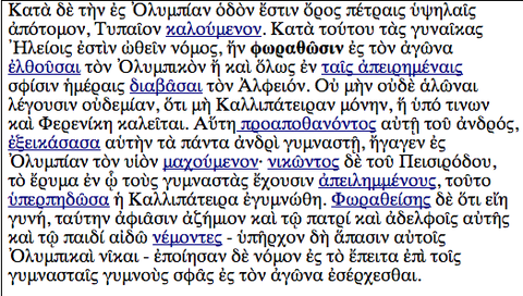 ἐλθοῦσαι (μεταφ: αν αποκαλυφθούν να έχουν έρθει). Κάνοντας την σύνταξη, θα διαπιστώσουμε ότι η μτχ "ἐλθοῦσαι" αναφέρεται στο υποκείμενο του ρημ. "φωραθῶσιν" (που εννοείται απο τα προηγούμενα) "αἱ γυναῖκες". Συγκεκριμένα, ρ. και μτχ έχουν το ίδιο υποκείμενο.Διαπιστώνουμε λοιπόν ότι: