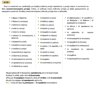 κατηγορούμενο (η επιθετική μετοχή είναι πάντοτε έναρθρη)