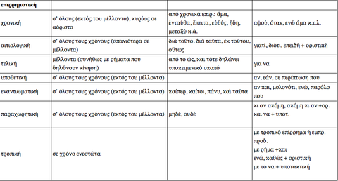 μπορεί να είναι, αντίστοιχα, χρονική, αιτιολογική, τελική, υποθετική, εναντιωματική, παραχωρητική, τροπική.