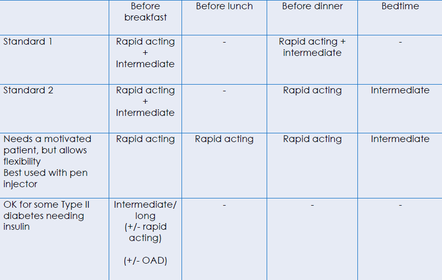 Rapid acting -Lispro (Humalog), Asparte (Novarapid) - works within in 15 mins. peaks 30-90misn and can last 4 hours.