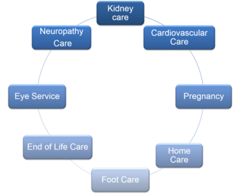 Eye Disease: Retinopathy - regular eye tests. Can be managed with laser treatment. Need good glucose and BP control. Refer to optometrist or ophthalmic optician. Free eye tests for diabetics.