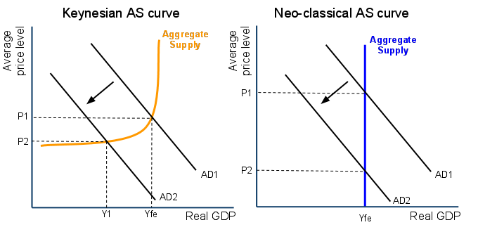 Classical Long run AS (LRAS) shows total planned output when prices and average wage rates can change - it measures the country's potential output (like PPF). It is a vertical line.Trend growth is the estimated rate of growth of a nation's productive potential. Productivity measures the efficiency of the production process. In the long run, productivity is a major determinant of economic growth and of inflation. A fall in labour productivity leads to a rise in a firms unit costs of productionHigher productivity allows businesses to pay higher wages and achieve increased profits. Non linear (Keynesian) AS curve shows that when spare capacity is high then SRAS will be elastic and a rise in AD can be easily achieved by increasing output with little effect of rising inflation. The elasticity of SRAS falls as output increases and the amount of spare capacity declines leading to shortages.