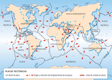 Las porciones de tierra que emergen de las aguas oceánicas son denominadas continentes (Placas continentales que están por encima de los oceános); cada una presenta una extensión territorial diferente.