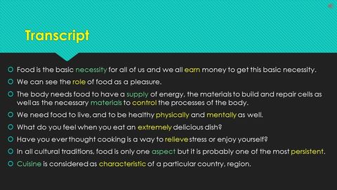 Video for Unit 2 : The Role of FoodPowerpoint :The Role of Food (Communicative) Powerpoint : Food & Dinning (Business) Food Words List Dining Words list Fast food ToolsFurther readings : Save the World by Eating Bugs Reviews of Restaurants and Dishes