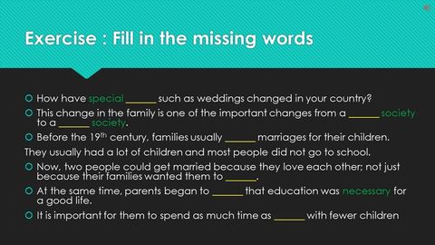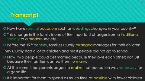 Video : The Change in the FamilyPowerpoint : The Change in the FamilyPowerpoint : Family & Friends (Business)Word List for Family, Home & General ConversationTed Talk