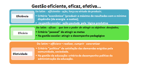 Gestão Educacional é baseada na organização dos sistemas de ensino federal, estadual e municipal e das incumbências desses sistemas; das várias formas de articulação entre as instâncias que determinam as normas, executam e deliberam no setor educacional; e da oferta da educação pelo setor público e privado.Gestão Escolar trata das incumbências que os estabelecimentos de ensino possuem. cada escola deve elaborar e executar sua proposta pedagógica, administrar seu pessoal e seus recursos materiais e financeiros, cuidar do ensino aprendizado do aluno e articular-se com as famílias e a comunidade proporcionando um processo de integração. A autonomia é outro ponto importante da gestão escolar. A gestão educacional é compreendida através das iniciativas desenvolvidas pelos sistemas de ensino, já a gestão escolar, situa-se no âmbito da escola e trata das tarefas que estão sob sua responsabilidade, procura promover o ensino aprendizagem para todos.