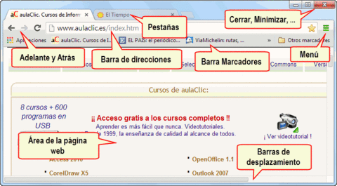 más amigable para enseñar a navegar por internet. Entorno del navegador A continuación comenzare a describir los distintos elementos que forman parte de este navegador o browser.