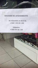 Original (errado):"De segunda a sexta: das 13H ás 18H.""Sabádo: das 9H ás 12H".*Os dois casos de horários necessitam o uso do acento crase, pois eles precedem horas. Forma correta:"De segunda a sexta: das 13H às 18H.""Sabádo: das 9H às 12H".