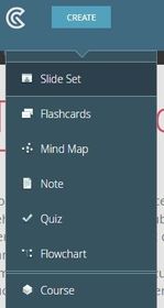 GoConqr provides a number of tools that will help you create your own learning resources. To access them, simply click the Create button and select a resource type from the menu (see image).You will find that different resource types are useful for different subjects and learning styles. Mind Maps are particularly useful for curriculum mapping and brainstorming, while Flashcards are great for memorizing snippets of information.You can also create a course, which pulls together a bundle of resources that you have created or that other GoConqr users have created and you have discovered .