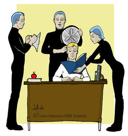 La silla y la mesa de trabajo deben de estar a una altura adecuada y preferiblemente con respaldo recto para propiciar una actitud activa ante el trabajo. Lo ideal sería disponer de una mesa de estudio, una silla y armario-estantería
