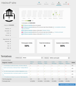 Em GoConqr também é possível gerar relatórios de engajamento e performance de grupos, além de reportes individuais. Essa funcionalidade é exclusiva do plano GoConqr Campus, pensado para instituições de ensino e/ou projetos educacionais para multiplos usuários (mínimo 10).Com Relatórios é possível acompanhar engajamento dos grupos e gerar reportes completos de resultados em Quizzes e cursos. Até mesmo programar certificados!Interessado em saber mais sobre o plano Campus?