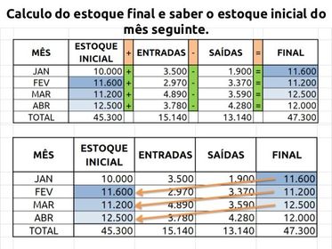 Estoque inicial: material necessário para suprir e atender as necessidades de produção.Dica: Gerenciar de forma adequada os seus estoques e manter um nível seguro de estoques que lhe permita atender suas necessidades e não imobilize muitos recursos.