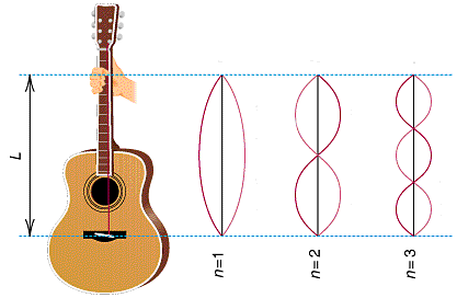 Caption: : A corda da guitarra vibra em torno da posição de equilíbrio.