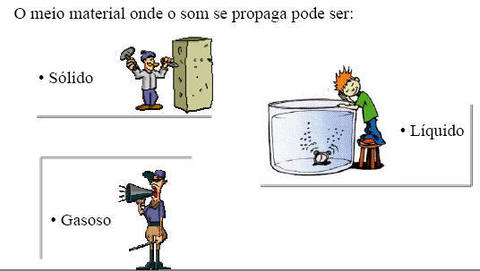 Três condições necessárias para que possa haver som: Emissor (ou fonte sonora); Meio material (onde o som se propaga); Recetor do som.