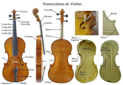 O violino é um instrumento musical, classificado como instrumento de cordas friccionadas. É o menor e mais agudo dos instrumentos de sua família [1] (que ainda possui a viola, o violoncelo, correspondendo ao Soprano da voz humana). O violino possui quatro cordas[2], com afinação da mais aguda à mais grave: Mi5, Lá4, Ré4 e Sol3. O timbre do violino é agudo, brilhante e estridente, mas dependendo do encordamento utilizado e da forma que é tocado, podem-se produzir timbres mais aveludados. O som geralmente é produzido pela acção de friccionar as cerdas de um arco de madeira sobre as cordas. Também pode ser executado beliscando ou dedilhando as cordas (pizzicato), pela fricção da parte de madeira do arco (col legno), ou mesmo por percussão com os dedos ou com a parte de trás do arco.